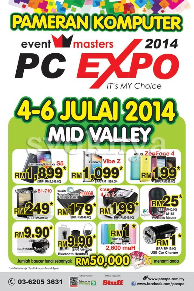 Event Masters PC Expo Event For Computer & Digital Products. Enjoy discounts on computer laptops, printers, smartphones, computer accessories, tablet PCs, IT Gadgets accessories and many more. ** Call at +603 6205 3631 for more enquiries. PC EXPO电脑博览会又再一次卷土重来了,7月4日至6日在谷中城会展中心(Mid Valley Exhibition Centre)热烈引爆! 高达5万零吉的购物礼券等待你来赢取。 您可以购买最超值, 最实惠的电脑科技产品。11am to 9pm. 入场免费。您还有机会赢取更多的奖品。请前来参观以了解更多。 PC EXPO is back again at Mid Valley Exhibition Centre, on 4 to 6 July! Best Price, Best Deal, Best Promotion only at PC EXPO . Total Cash Voucher worth of RM 50,000 awaits you. Best Price, Best Deal, Best Promotion on IT Gadget Product only at PC Expo. 11am to 9pm. Free Admission. You have chance to win more prizes. Visit us to find out more. Date : 4th Jul 2014 (Friday) - 6th Jul 2014 (Sunday) 11.00a.m to 9.00p.m Venue : Mid Valley Exhibition Centre, Mid Valley Megamall, Mid Valley City, Kuala Lumpur, Malaysia Kindly visit to Event Masters Malaysia facebook & website at https://www.facebook.com/pcexpo & http://www.pcexpo.com.my/ for more details. ********************************************************************************************** TIP: Have difficulty to the location? Let us guide you to the destination by using your Smartphone GPS Navigation Apps (Waze, Apple Maps & Google Maps). Easy 1, 2, 3 steps: - Use Smartphone browser (Safari / Chrome) or scan the ad QR Code browse to this advertisement. - Tap on the "How to get there". - Tap on preferred app to direct you to the location. Lets 'Share' this advertisement to your FB friends if find this good and don't forget to 'Like' Syoknya Malaysia page for your support, thanks! *******************************************************